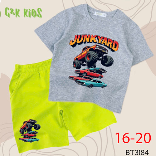 A508128 - Bộ bé trai chất thun coton 4c mềm mịn in xe YUNKYARD_Size 16-20