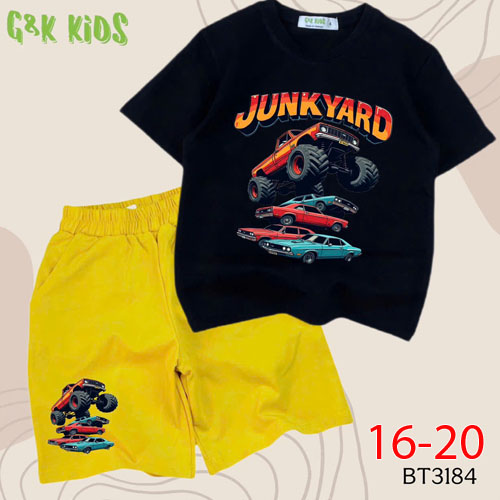 A508129 - Bộ bé trai chất thun coton 4c mềm mịn in xe YUNKYARD_Size 16-20