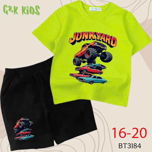 A508138 - Bộ bé trai chất thun coton 4c mềm mịn in xe YUNKYARD_Size 16-20