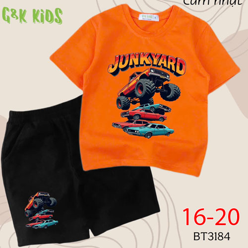 A508140 - Bộ bé trai chất thun coton 4c mềm mịn in xe YUNKYARD_Size 16-20