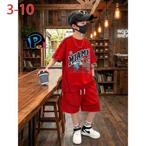 A508267 - Set bé trai viền lé phong cách thể thao năng động thun cotton in gấu BALLER_Size 3-10