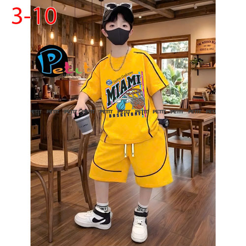 A508271 - Set bé trai viền lé phong cách thể thao năng động thun cotton in gấu BALLER_Size 3-10