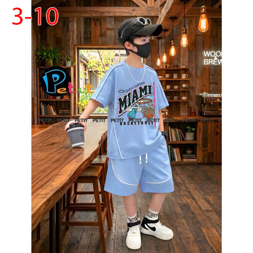 A508279 - Set bé trai viền lé phong cách thể thao năng động thun cotton in gấu BALLER_Size 3-10