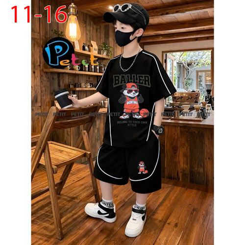 A508282 - Set bé trai viền lé phong cách thể thao năng động thun cotton in gấu BALLER_Size 11-16