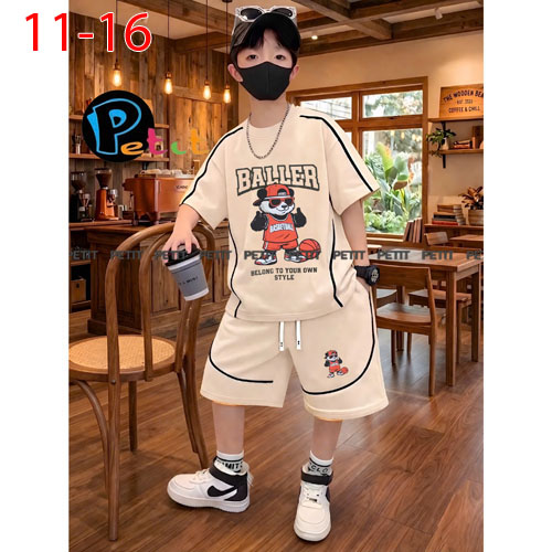A508286 - Set bé trai viền lé phong cách thể thao năng động thun cotton in gấu BALLER_Size 11-16