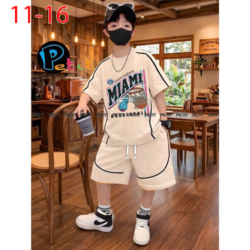 A508287 - Set bé trai viền lé phong cách thể thao năng động thun cotton in gấu BALLER_Size 11-16