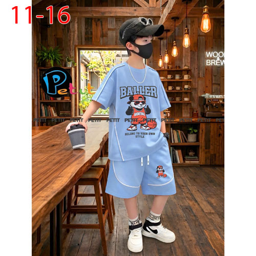 A508288 - Set bé trai viền lé phong cách thể thao năng động thun cotton in gấu BALLER_Size 11-16