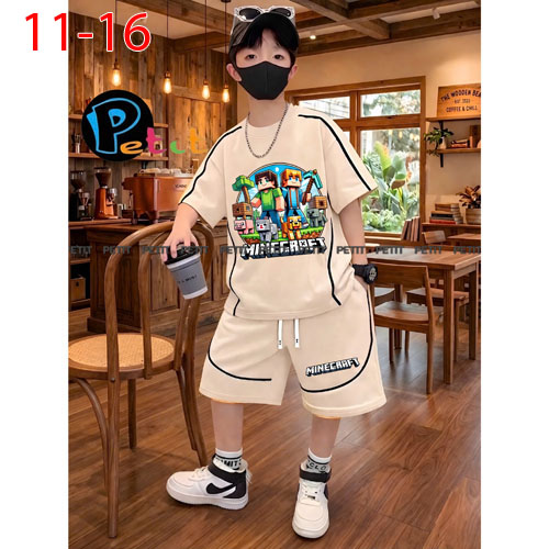 A508289 - Set bé trai viền lé phong cách thể thao năng động thun cotton in gấu BALLER_Size 11-16