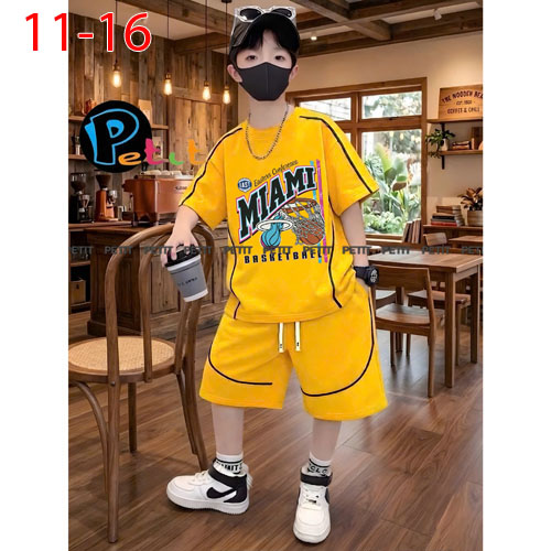 A508292 - Set bé trai viền lé phong cách thể thao năng động thun cotton in gấu BALLER_Size 11-16