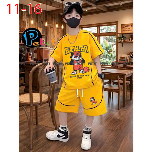 A508295 - Set bé trai viền lé phong cách thể thao năng động thun cotton in gấu BALLER_Size 11-16