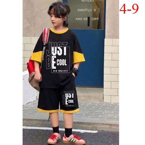 A508460 - Set bộ sang trọng lịch lãm cho bé trai cotton mềm mịn hình in chữ JUST BE COOL_Size 4-9