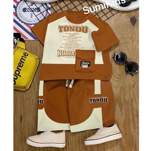 A508574 - (28/4) Bộ thun phong cách cool ngầu cho bé trai thun cotton 4c áo phối vải, áo may đắp túi