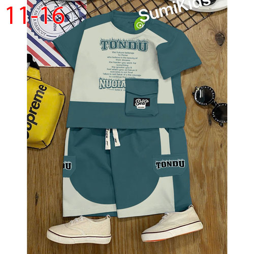 A508575 - (28/4) Bộ thun phong cách cool ngầu cho bé trai thun cotton 4c áo phối vải, áo may đắp túi