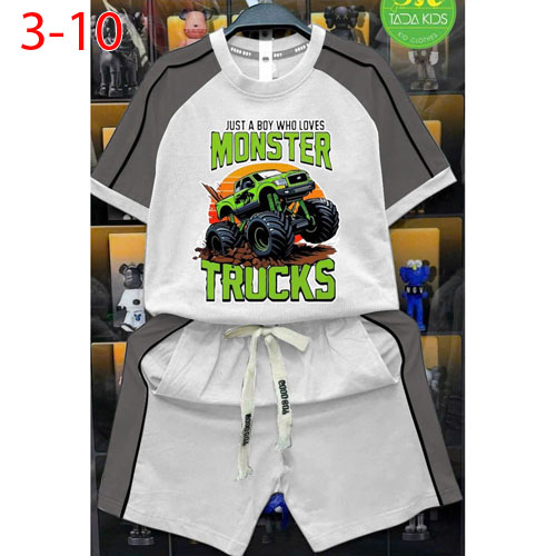 A509115 - Bộ bé trai rã phối viền lé cotton 4 chiều hình in xe Monster_Size 3-10