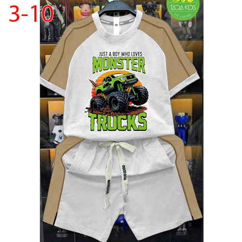 A509116 - Bộ bé trai rã phối viền lé cotton 4 chiều hình in xe Monster_Size 3-10