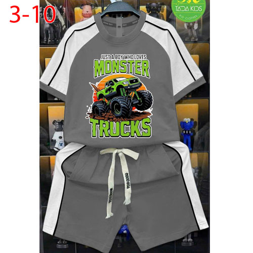 A509117 - Bộ bé trai rã phối viền lé cotton 4 chiều hình in xe Monster_Size 3-10