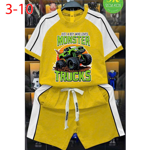 A509119 - Bộ bé trai rã phối viền lé cotton 4 chiều hình in xe Monster_Size 3-10