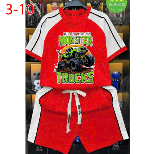 A509120 - Bộ bé trai rã phối viền lé cotton 4 chiều hình in xe Monster_Size 3-10