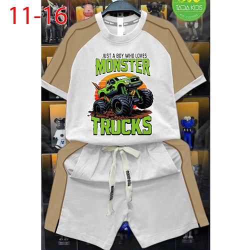 A509129 - Bộ bé trai rã phối viền lé cotton 4 chiều hình in xe Monster_Size 11-16