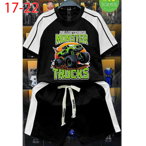 A509134 - Bộ bé trai rã phối viền lé cotton 4 chiều hình in xe Monster_Size 17-22