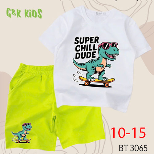 A482519 - Bộ bé trai chất thun coton 4c in khủng long SUPER CHILL DUDE_Size 10-15