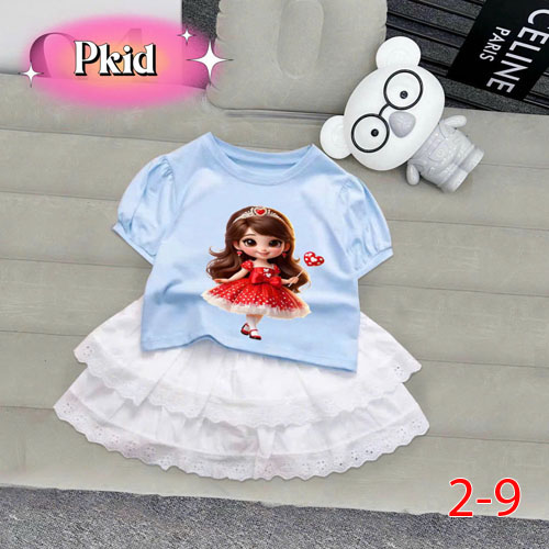 A484809 - Set váy cực sang chãnh cho bé gái chất liệu cotton 4c in cô bé tổng hợp_Size 2-9