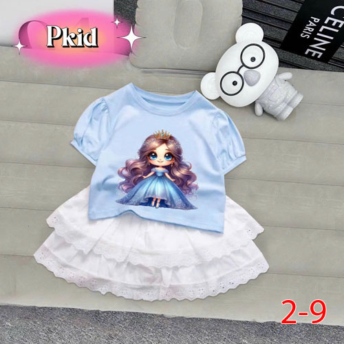 A484812 - Set váy cực sang chãnh cho bé gái chất liệu cotton 4c in cô bé tổng hợp_Size 2-9