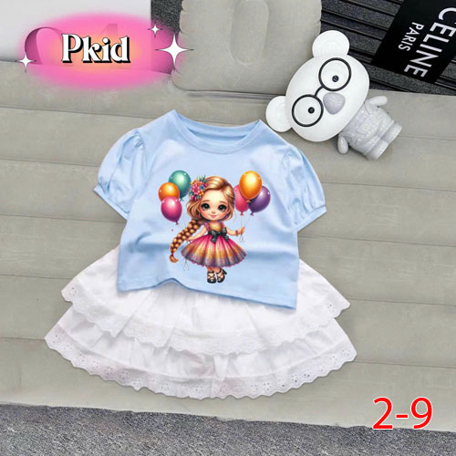 A484814 - Set váy cực sang chãnh cho bé gái chất liệu cotton 4c in cô bé tổng hợp_Size 2-9