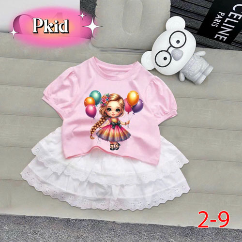 A484817 - Set váy cực sang chãnh cho bé gái chất liệu cotton 4c in cô bé tổng hợp_Size 2-9