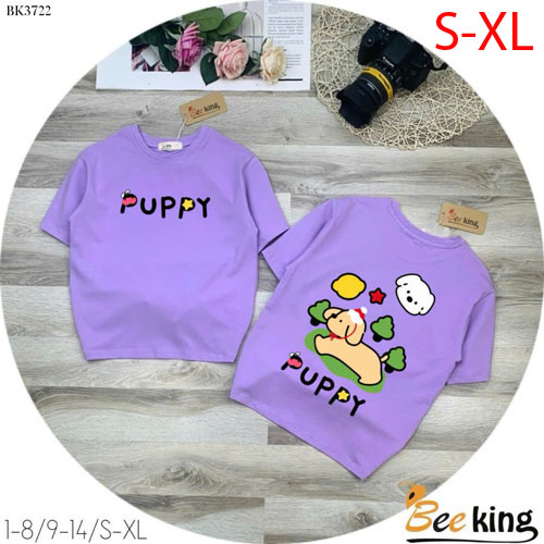 A485833 - Áo form rộng giấu quần Puppy cún thun cotton 4c_Size S-XL
