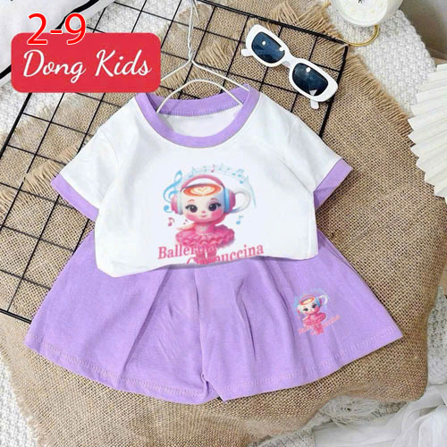 A475246 - Bộ đùi áo croptop in hình hot trend cho bé gái mặc đi chơi, đi học_Size 2-9