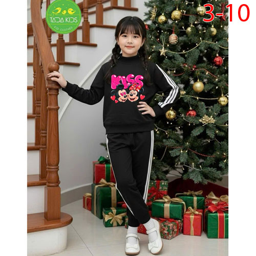 A486013 - Bộ dài chạy dây sọc thể thao cho bé gái thun cotton in Kitty_Size 3-10
