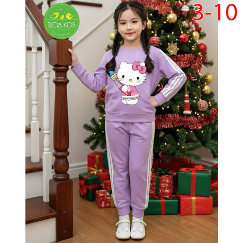 A486017 - Bộ dài chạy dây sọc thể thao cho bé gái thun cotton in Kitty_Size 3-10