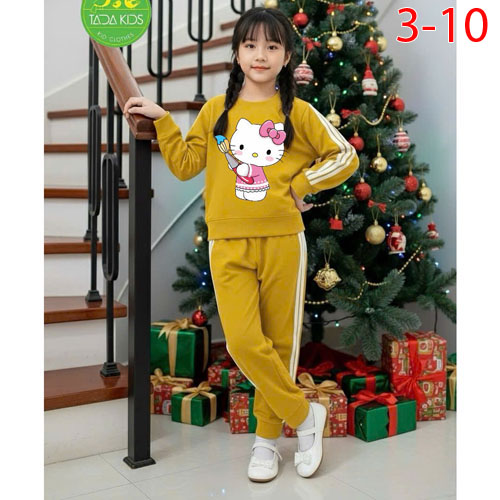 A486022 - Bộ dài chạy dây sọc thể thao cho bé gái thun cotton in Kitty_Size 3-10