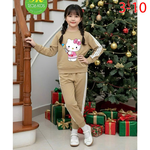 A486027 - Bộ dài chạy dây sọc thể thao cho bé gái thun cotton in Kitty_Size 3-10
