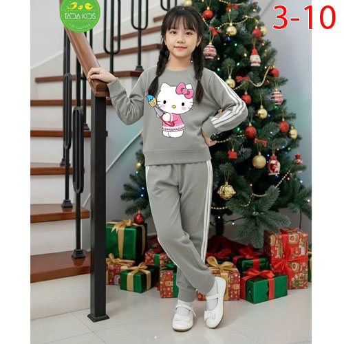 A486028 - Bộ dài chạy dây sọc thể thao cho bé gái thun cotton in Kitty_Size 3-10