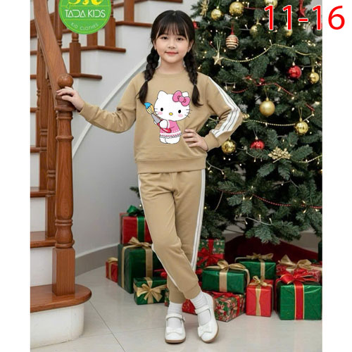 A486032 - Bộ dài chạy dây sọc thể thao cho bé gái thun cotton in Kitty_Size 11-16