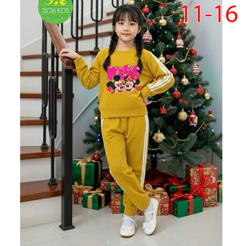 A486034 - Bộ dài chạy dây sọc thể thao cho bé gái thun cotton in Kitty_Size 11-16