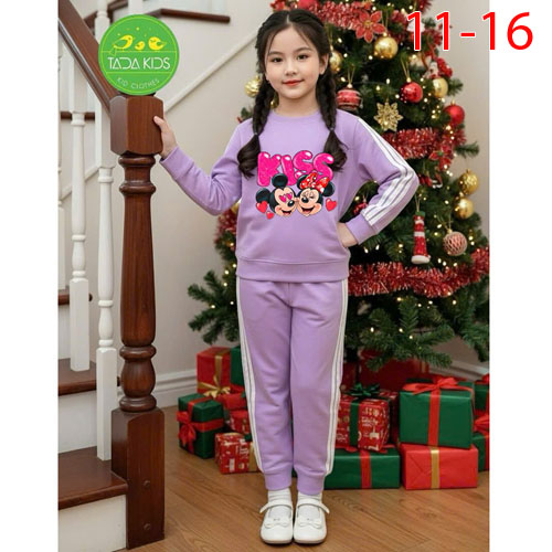 A486036 - Bộ dài chạy dây sọc thể thao cho bé gái thun cotton in Kitty_Size 11-16