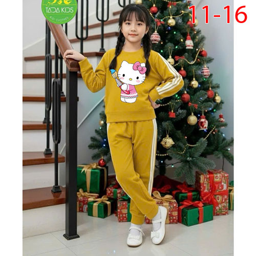 A486037 - Bộ dài chạy dây sọc thể thao cho bé gái thun cotton in Kitty_Size 11-16
