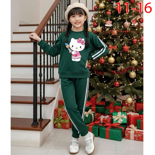 A486039 - Bộ dài chạy dây sọc thể thao cho bé gái thun cotton in Kitty_Size 11-16