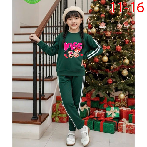 A486040 - Bộ dài chạy dây sọc thể thao cho bé gái thun cotton in Kitty_Size 11-16