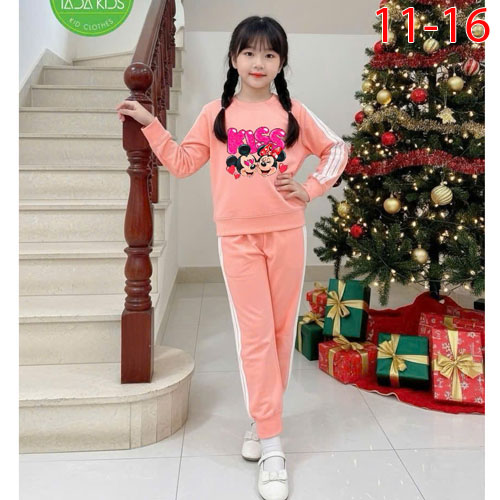 A486043 - Bộ dài chạy dây sọc thể thao cho bé gái thun cotton in Kitty_Size 11-16