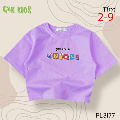 A486048 - Áo bé gái phom lững chất thun coton 4c in chữ You are so Unique_Size 2-9