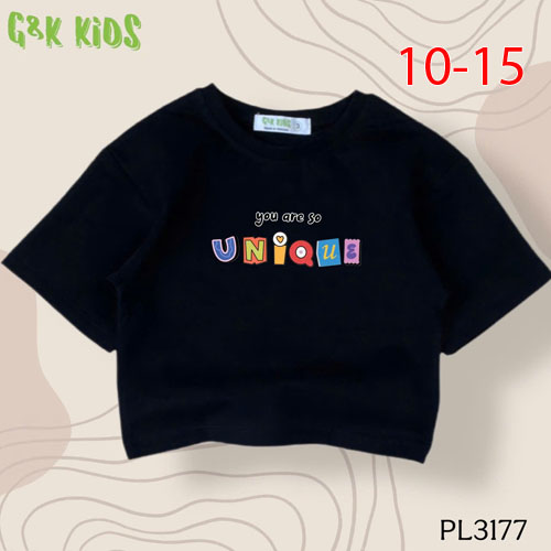 A486063 - Áo bé gái phom lững chất thun coton 4c in chữ You are so Unique_Size 10-15