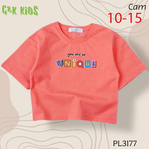 A486064 - Áo bé gái phom lững chất thun coton 4c in chữ You are so Unique_Size 10-15