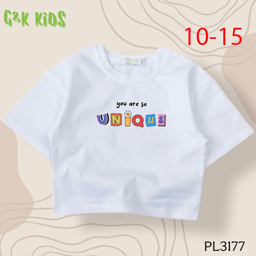A486066 - Áo bé gái phom lững chất thun coton 4c in chữ You are so Unique_Size 10-15
