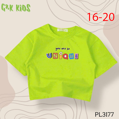 A486075 - Áo bé gái phom lững chất thun coton 4c in chữ You are so Unique_Size 16-20
