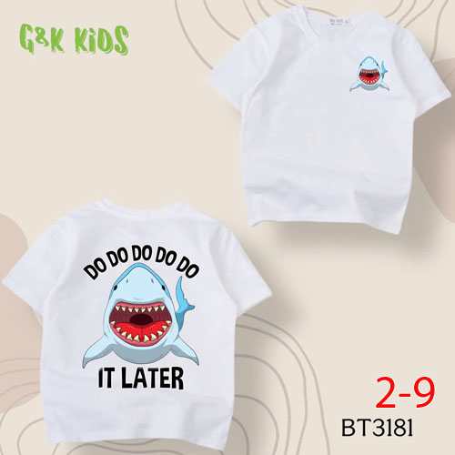 A486214 - Áo bé trai thun coton 4c in cá mập do do do_Size 2-9
