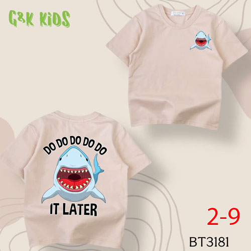 A486219 - Áo bé trai thun coton 4c in cá mập do do do_Size 2-9